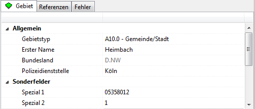 - Der Gebietstyp ist aus einer Liste von Typen auswählbar (im Beispiel A11.0 Gemeindeteil) und enthält Informationen zur hierarchischen Stufe des Gebiets.