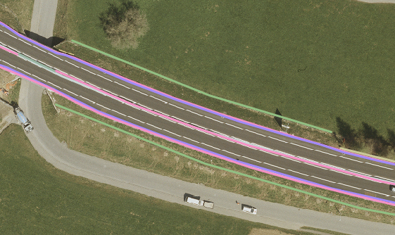Das Beispiel zeigt nun die verschiedenen Objekttypen als Linien mit unterschiedlichen Farben.