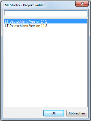 Im Dialogfenster Projekt wählen stehen die Projekte zur Auswahl, die bereits als Konfigurationsdatei vorhanden sind.
