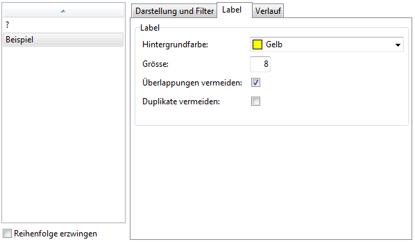 Wie die Labels grafisch dargestellt werden, wird durch die Einstellungen im Fensterbereich Label bestimmt.