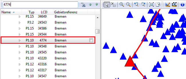 To identify objects with potential errors as perceived by Semantic Checks, use the [[Search Tree|search panel]] where you type in or paste (from an Excel [[Export Combined Report|Combined Report]]) the LCD number and start searching the object list by hitting the ENTER key: