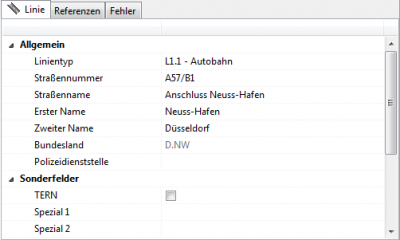 Im Detailbereich sind unter Allgemein folgende Linieninformationen abgelegt, die nach der Erstellung einer Strasse einzutragen sind: