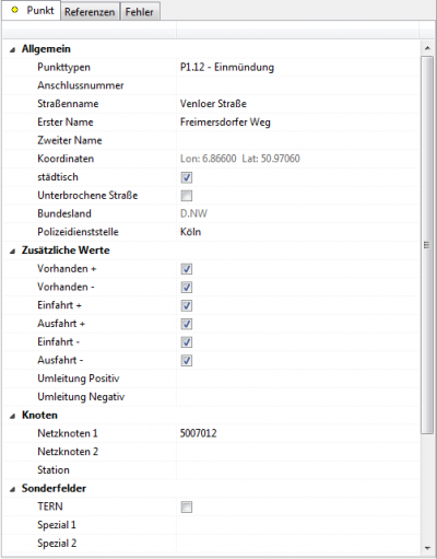 Die Informationen zu Punkten finden sich im Fenster Detailbereich. Unter Allgemein sind folgende Informationen abgelegt, die nach der Erstellung eines Punkts vervollständigt werden müssen: