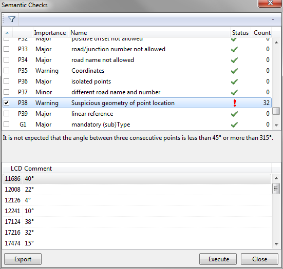 The Semantic Checks window is accessed either by the Checks menu or - in case of the corresponding option having been set - as a part of the Import Location Table Exchange Format function.