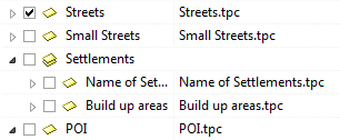 With this function, a new topic group can be added. Such a group enables a hierarchical structuring of the topic group and does not contain further datas itself. Different street types as Streets respectively Small Streets or Settlements are some of these possibilities:
